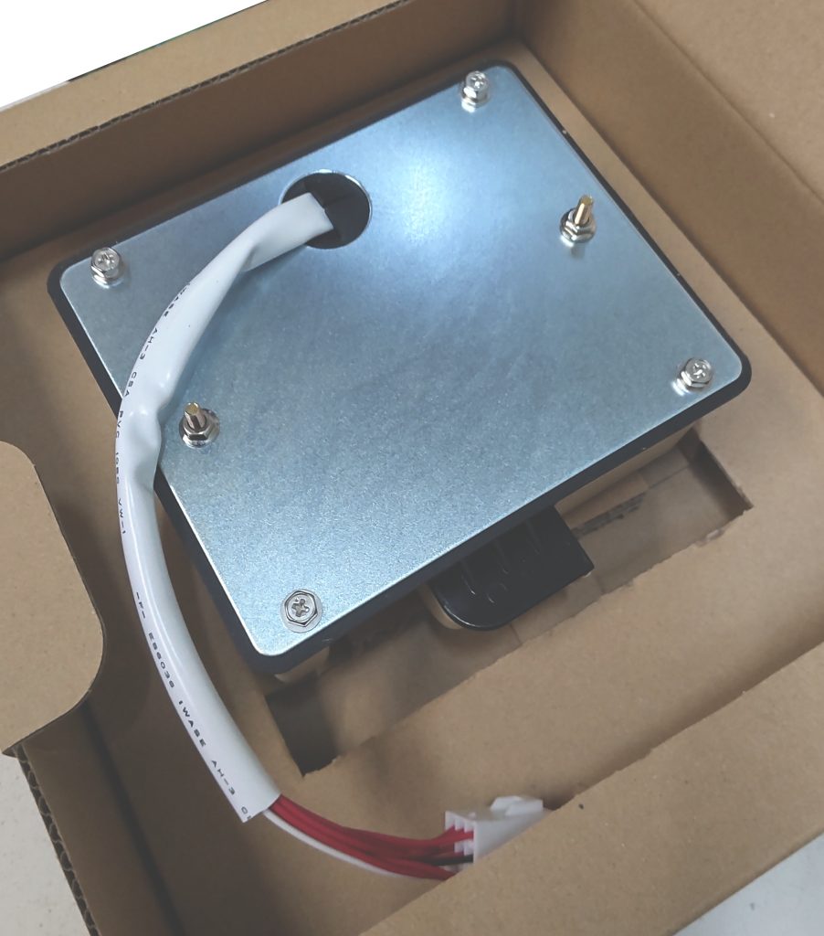 とりあえず、黒いボックスを硬貨投入口のガイドのプラスチックに固定すると少し収納しやすくなる。最終的に画像のように収めることができた。