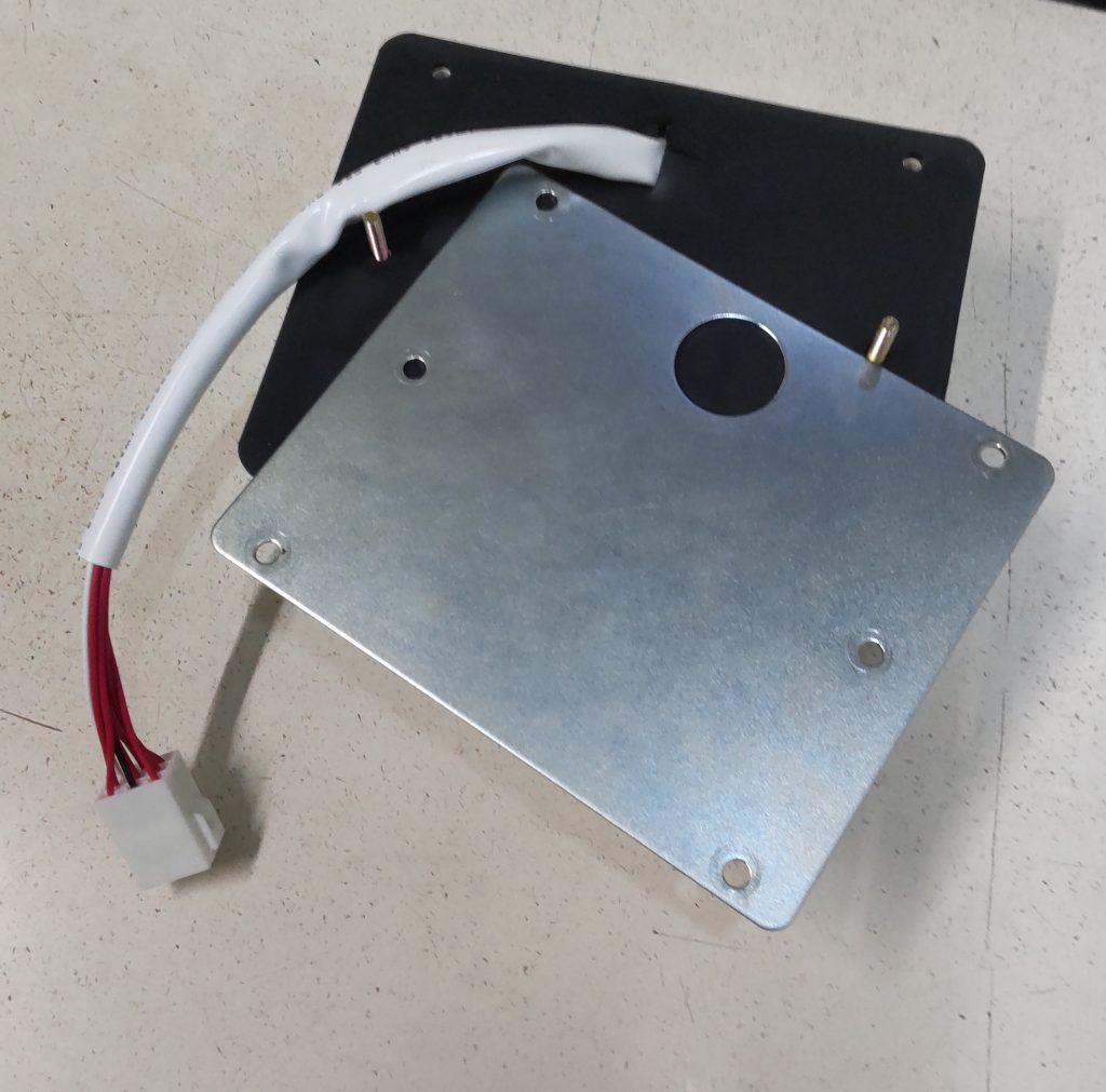 配線はおいといて、ひとまずEXCの取り付け位置に固定。自販機の金属部分に固定するので、補強版は無くてもよさそうな気はするが、標準で付属しているものなので一応使う。専用ハーネスとEXCをカプラ接続。