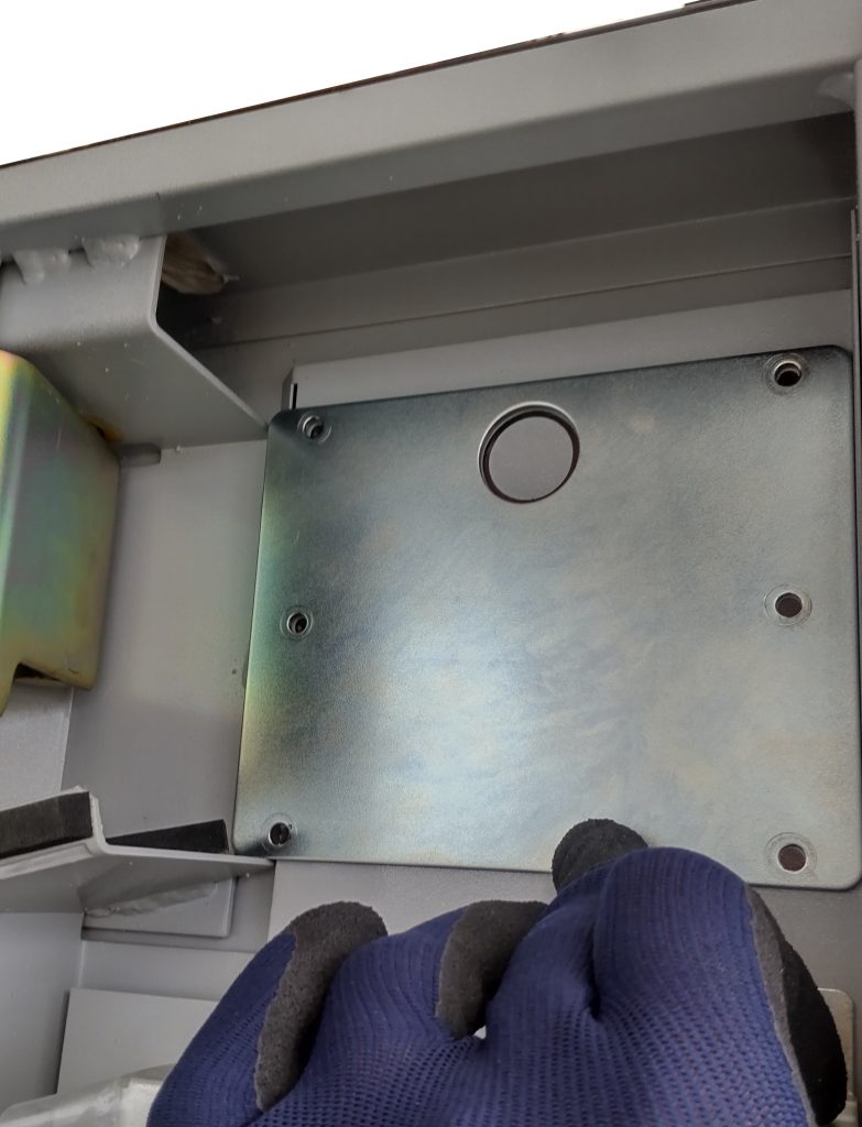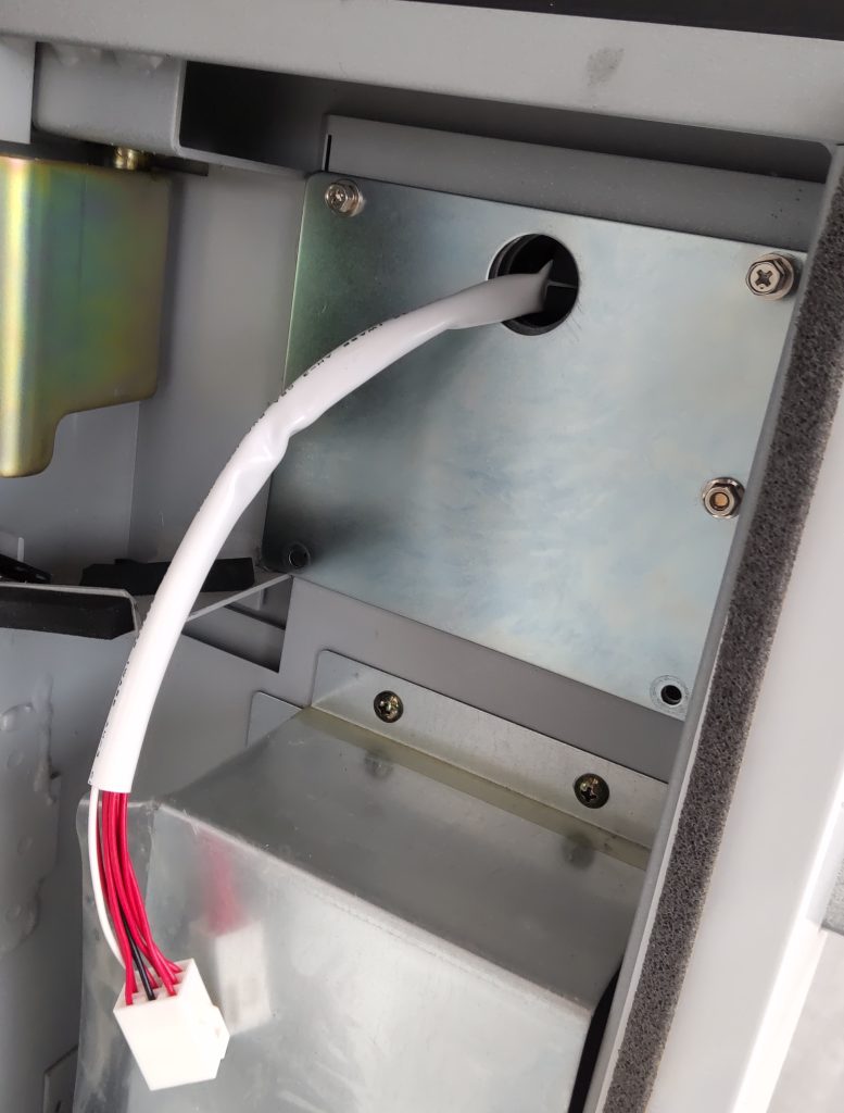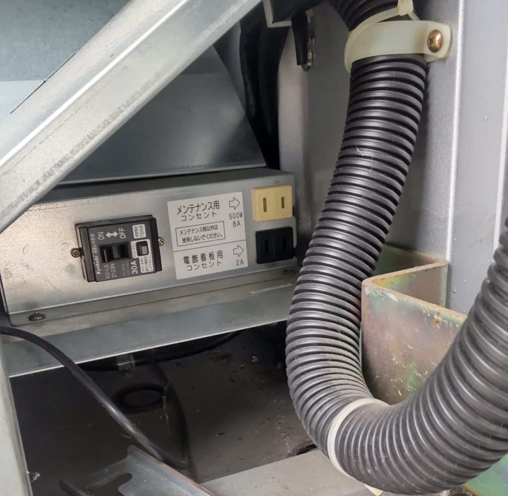 まずは、自販機下部のカバー類を外す。スイッチを切ったり、配線を通したりするため、全部外した方が作業はしやすい。