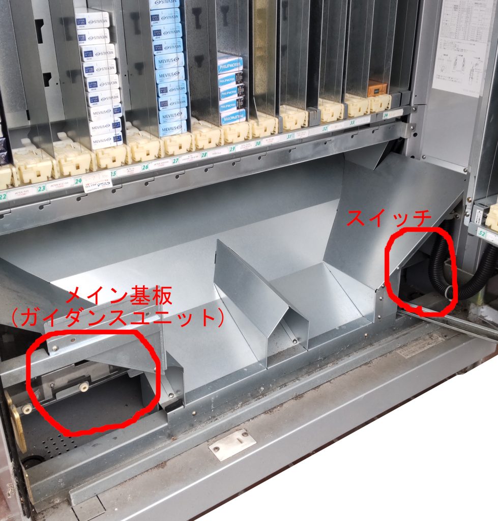 右側にはスイッチ、左側にメイン基板(正式名称がわからないが「ガイダンスユニット」と呼ばれることもあるそうだ)