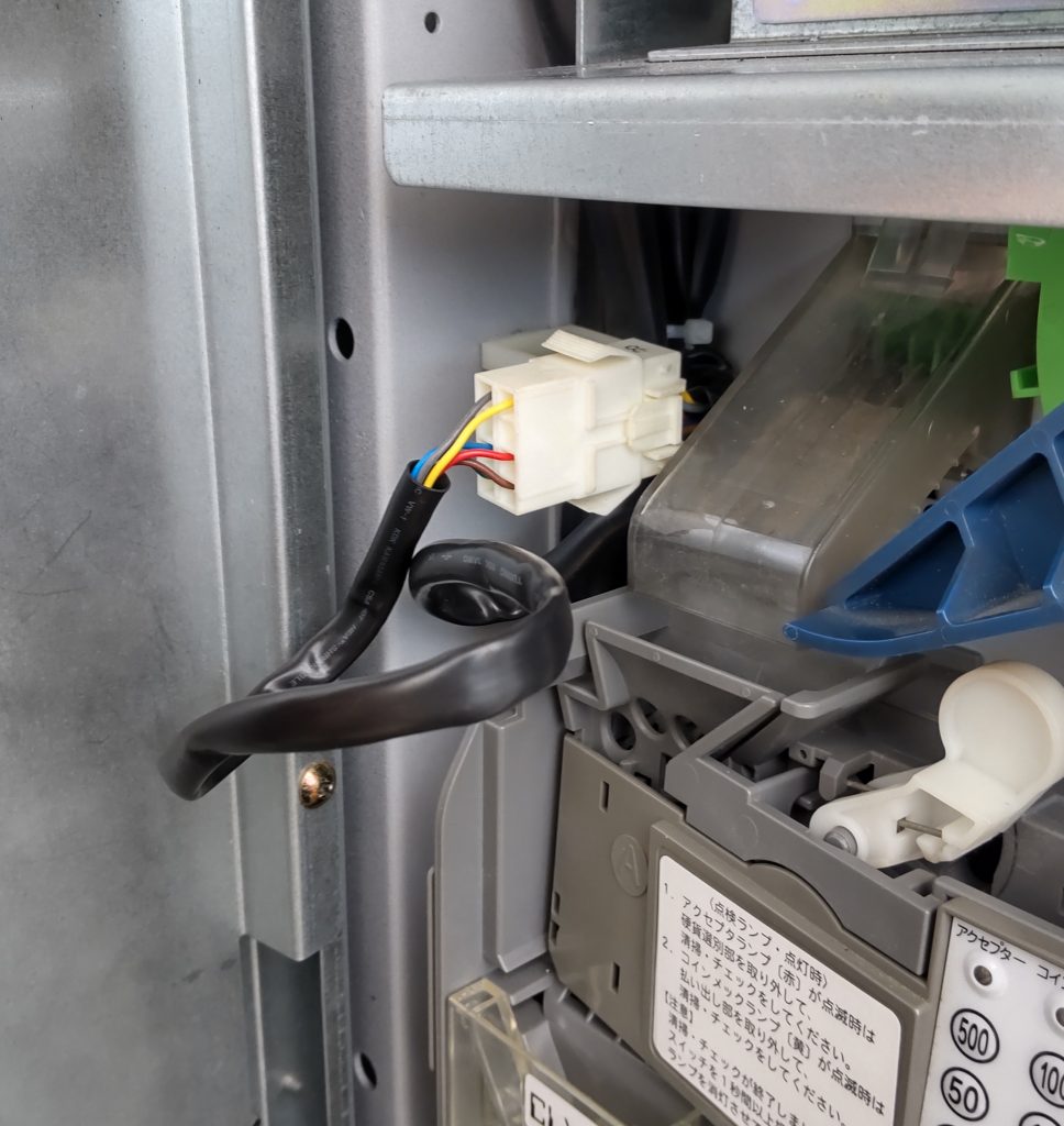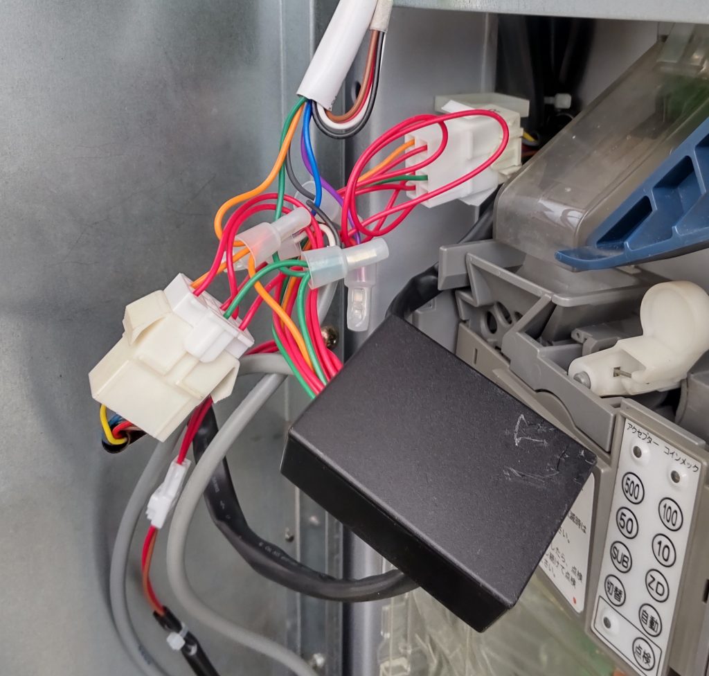 通常では、シンプルに1本の配線でコインメックとカプラが接続されているのみだ。