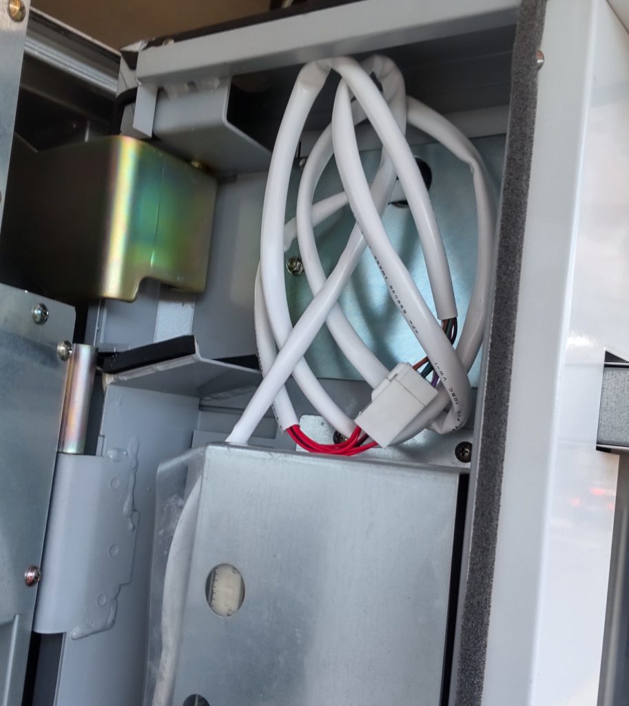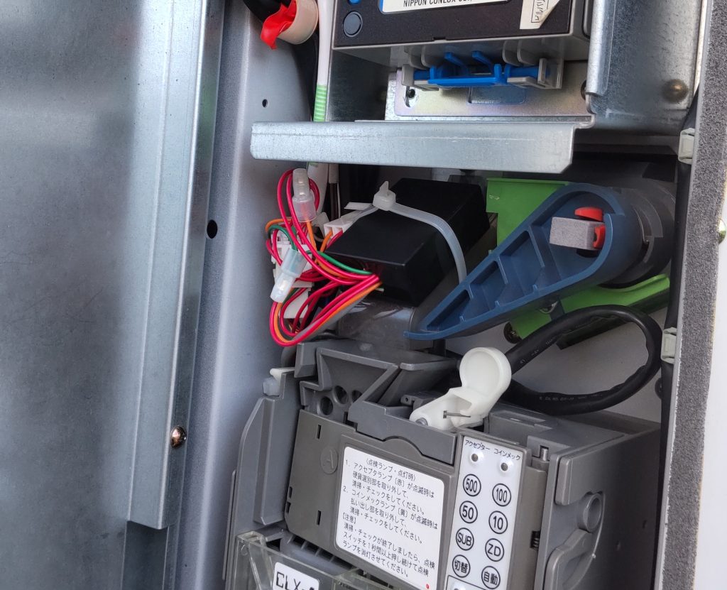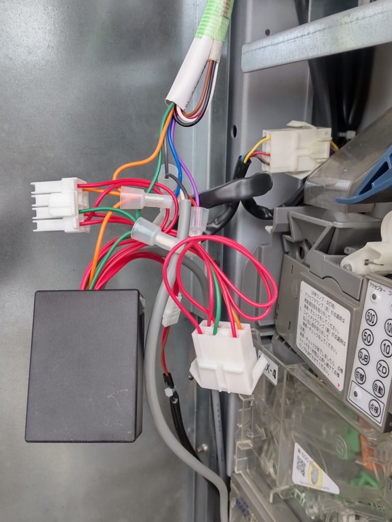 最後に専用ハーネスが既存の機器に干渉していないか、ドアを閉めた時に噛まないかよく確認する。もし噛んだりしていたら、断線してしまう可能性も高くなりEXCだけでなく、自販機ごと機能しなくなるので要注意だ。